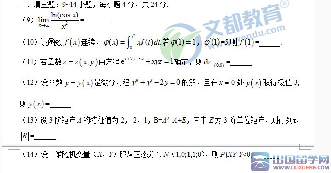 今年的研究生考試已圓滿的落下了帷幕,出國(guó)留學(xué)網(wǎng)考研頻道真誠(chéng)的為大家提供2015考研數(shù)學(xué)三真題:填空題,并且飛速的搶在別人前面為各位考生提供最新信息,如有需要,請(qǐng)火速收藏本網(wǎng)站!