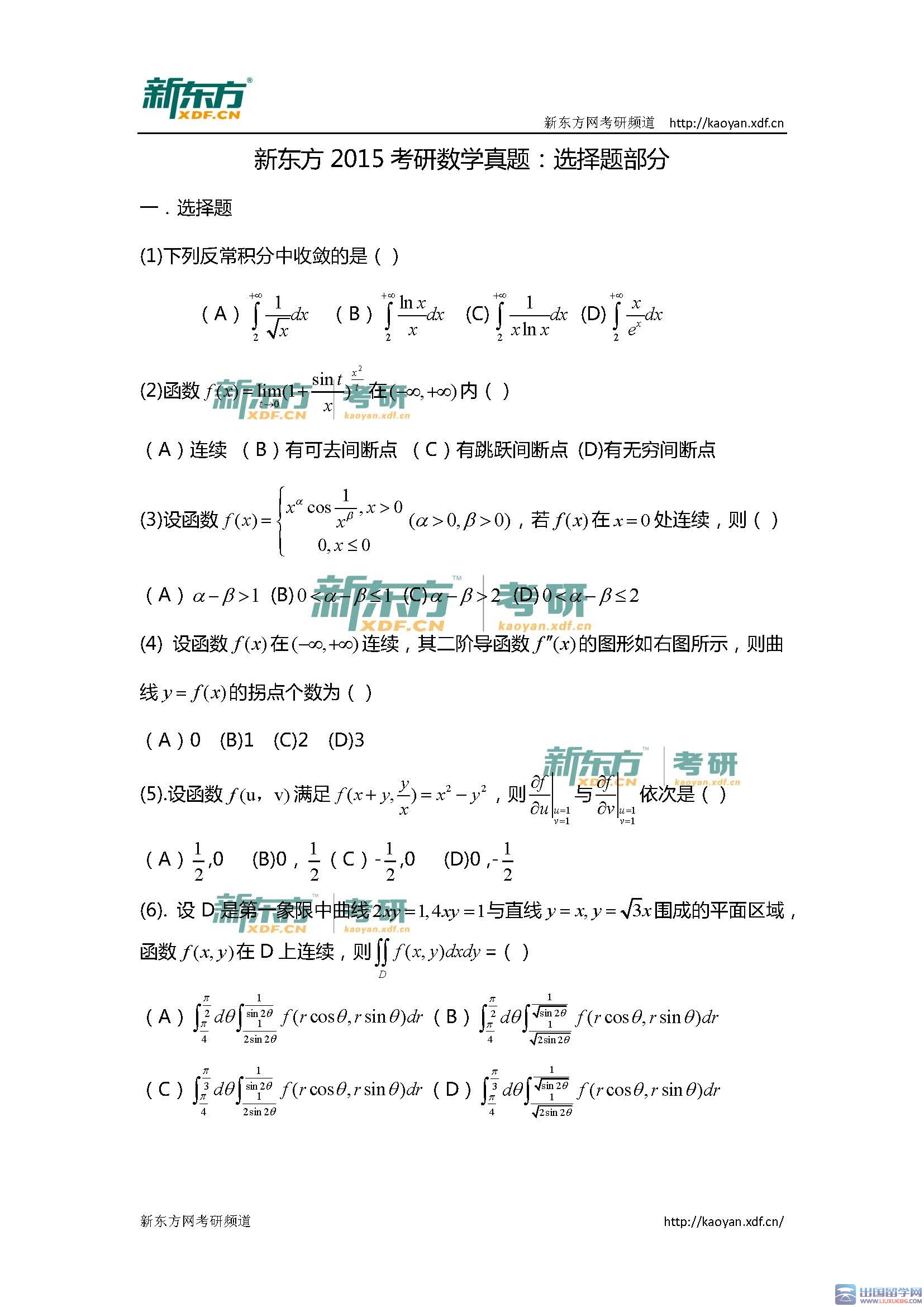 考研已經(jīng)圓滿結(jié)束,下面出國留學(xué)網(wǎng)小編為大家整理提供了一份2015考研數(shù)學(xué)二真題:選擇題,歡迎閱讀和轉(zhuǎn)載。
