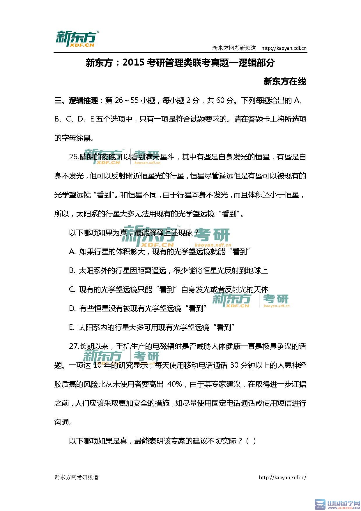 想知道2015年考研歷史學真題嗎?出國留學網(wǎng)考驗政治頻道為大家精心搜集整理了2015考研管理類聯(lián)考真題:邏輯部分,歡迎閱讀和轉(zhuǎn)載。