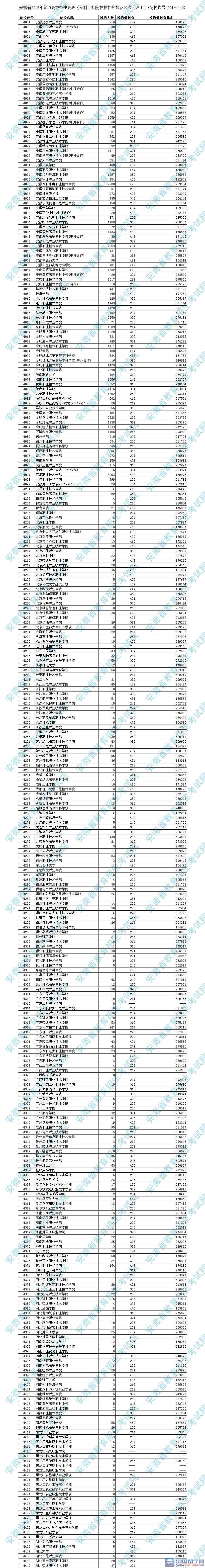 安徽2015年高職專科院校代碼為4001-4440投檔最低分?jǐn)?shù)線(理)