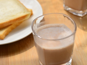 4、煮好之后,將花生核桃露過濾去掉渣;