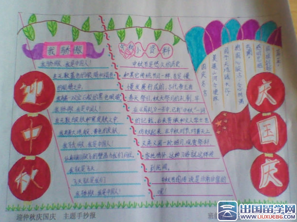 剛過去了中秋節(jié),國慶節(jié)很快就要接踵而至,本文(慶國慶迎中秋手抄報圖片)由出國留學(xué)網(wǎng)整理,希望對須要趕做中秋國慶主題手抄報的同學(xué)一些幫助,歡迎閱讀借鑒。