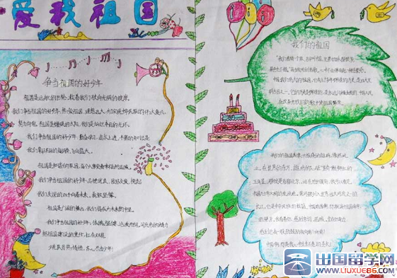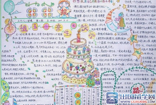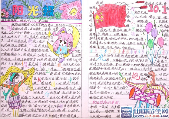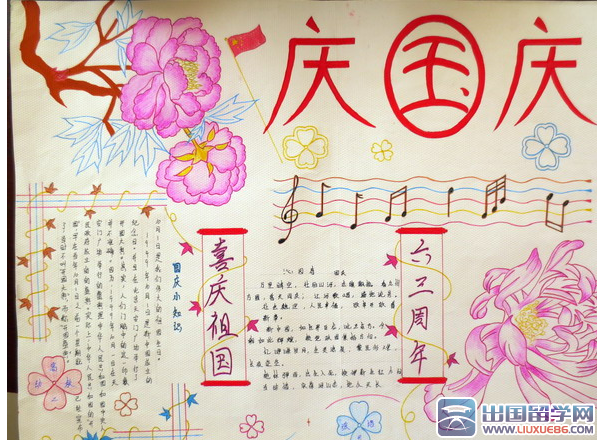 一般學生所做的國慶節(jié)手抄報水準都在一般水平,要想提高自己繪制手抄報的水平,一個是自己的繪畫和書法要提高,這是硬件,二就是布局構(gòu)思,這兩點上有長進,一張優(yōu)秀的手抄報就不成問題了,本文(中學生關(guān)于國慶節(jié)的手抄報)是由出國留學網(wǎng)整理的關(guān)于國慶節(jié)的手抄報,文中出文字內(nèi)容外有可供參考的手抄報高清圖片。
