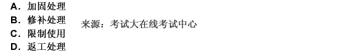 8、當(dāng)工程某些部分的質(zhì)量雖未達到規(guī)定的規(guī)范、標(biāo)準(zhǔn)或設(shè)計的要求,存在一定的缺陷,但經(jīng)過修補后可以達到要求的質(zhì)量標(biāo)準(zhǔn),又不影響使用功能或外觀的要求,可采?。ā 。?BR>