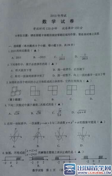 驚嘆號(hào)是勇士滴在攀登路上的血,也是懦夫失望時(shí)流淌的淚。出國(guó)留學(xué)網(wǎng)中考頻道的小編會(huì)及時(shí)為廣大考生提供:2015年遼寧錦州中考數(shù)學(xué)試題及答案 ,有需要的考生可以在考題公布后刷新本頁(yè)面(按ctrl+F5),希望對(duì)大家有所幫助。