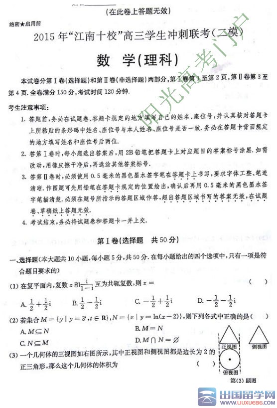 出國留學(xué)網(wǎng)高考頻道整理《2015江南十校聯(lián)考二模理科數(shù)學(xué)試題及答案》,供高考考生參考。2015江南十校聯(lián)考二模理科數(shù)學(xué)試題及答案,不僅可以檢驗(yàn)考生的復(fù)習(xí)情況,還能讓考生從中總結(jié)經(jīng)驗(yàn)、查漏補(bǔ)缺,同時(shí)也是對高考生心理承受力的一次錘煉。