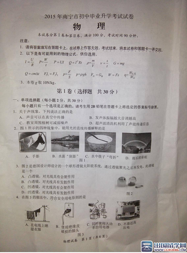 只要不放棄努力和追求,小草也有點(diǎn)綴春天的價(jià)值。出國留學(xué)網(wǎng)中考頻道的小編會(huì)及時(shí)為廣大考生提供:2015年廣西南寧中考物理試題及答案 ,有需要的考生可以在考題公布后刷新本頁面(按ctrl+F5),希望對(duì)大家有所幫助。
