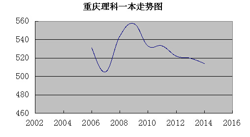 重慶理科一本分?jǐn)?shù)線2006年到2010年波動(dòng)比較大,2011年到2014年呈直線下降趨勢(shì),由上圖可以預(yù)測(cè)2015年重慶理科一本分?jǐn)?shù)線應(yīng)該不會(huì)上漲很多,應(yīng)該在514分上下波動(dòng)。 (以上數(shù)據(jù)僅供參考!)