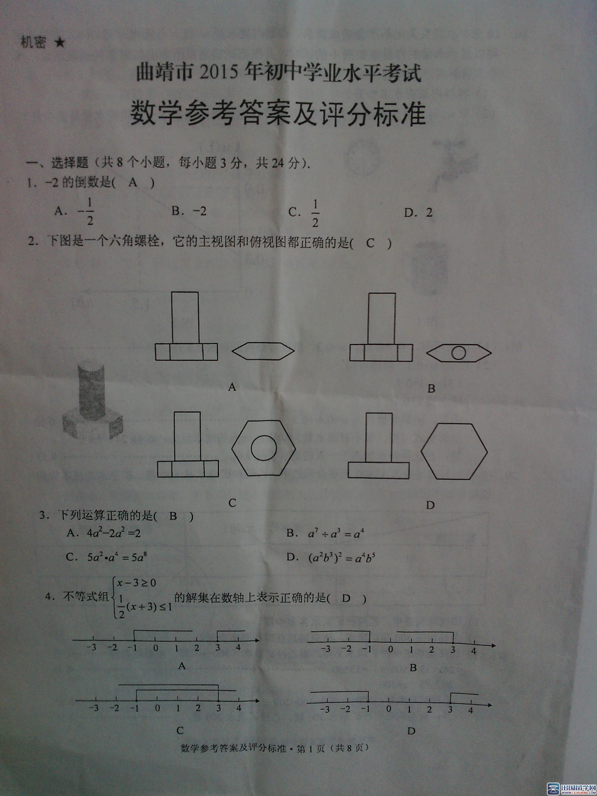 點(diǎn)擊下載>>2015年云南曲靖中考數(shù)學(xué)試題及答案
