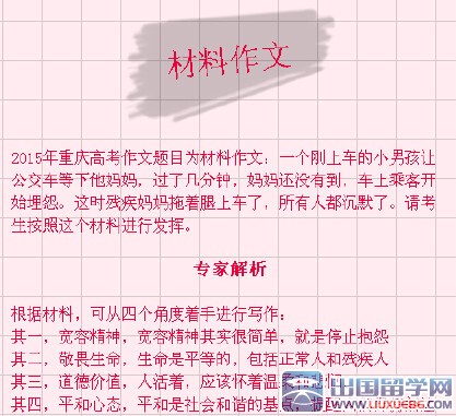 以下是出國留學網高考作文欄目為你第一時間帶來的《2015重慶作文題目》,希望對你有所幫助。