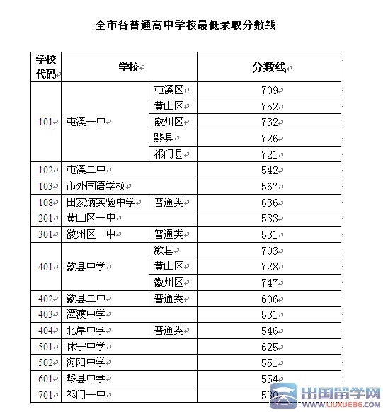 2015安徽黃山中考分?jǐn)?shù)線(已公布)