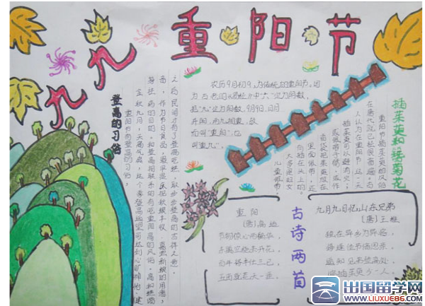 手抄報(bào)可以做的很簡(jiǎn)單,也可以做得很精美,主要在于你是否用了心,本文(一年級(jí)重陽(yáng)節(jié)手抄報(bào))由出國(guó)留學(xué)網(wǎng)整理,希望能對(duì)你的學(xué)習(xí)有所幫助,歡迎閱讀。