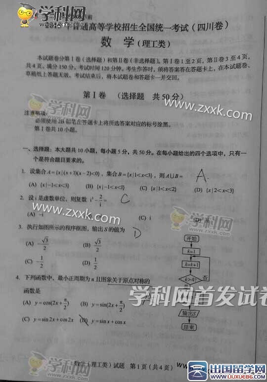 希望的未來(lái)就不遠(yuǎn)的前方等著你,自信帶你不斷前行。希望各位考生沉著應(yīng)考,坐等捷報(bào)傳來(lái)。出國(guó)留學(xué)網(wǎng)高考頻道會(huì)及時(shí)為廣大考生提供2015年四川高考理科數(shù)學(xué)真題及答案,與此同時(shí)接下來(lái)的其他科目真題及答案亦會(huì)在此頻道顯示,請(qǐng)考試及家長(zhǎng)關(guān)注本站更新(ctrl+D收藏即可)。