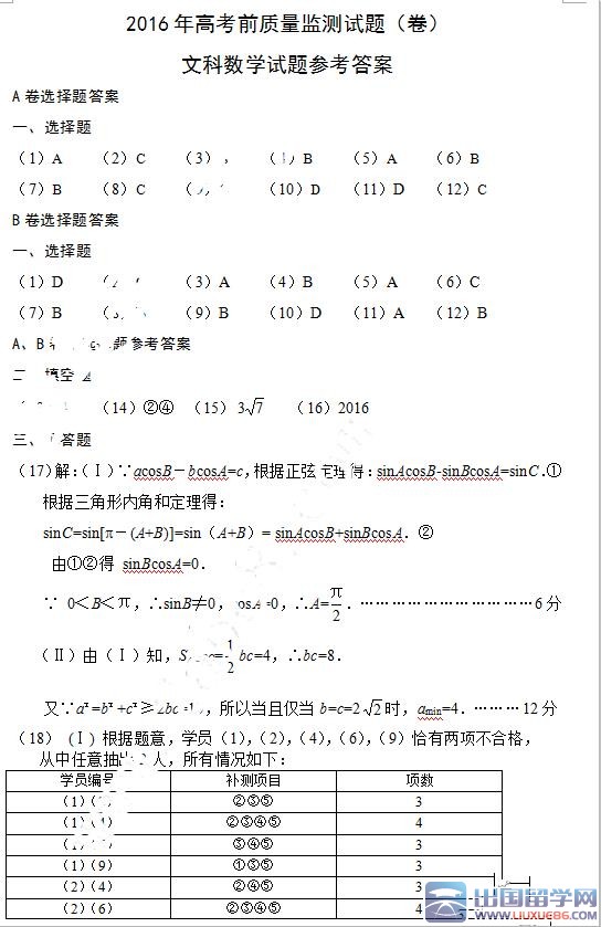 出國留學(xué)高考網(wǎng)為大家提供2016山西高考文科數(shù)學(xué)一模答案,更多高考資訊請(qǐng)關(guān)注我們網(wǎng)站的更新!