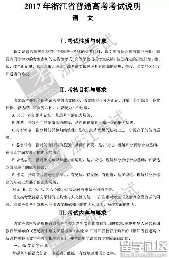 出國留學(xué)高考網(wǎng)為大家提供2017浙江新高考語文考試說明,更多高考資訊請關(guān)注我們網(wǎng)站的更新!