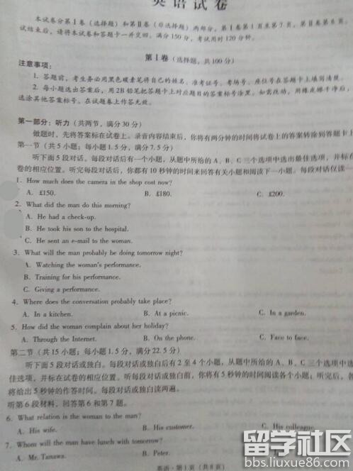 2017云南師大附中高考適應(yīng)性月考(二)于11月3日-4日考試,以下是出國留學(xué)網(wǎng)高考網(wǎng)小編整理的2017云南師大附中高考適應(yīng)性月考(二)英語答案,供同學(xué)們參考學(xué)習(xí)。