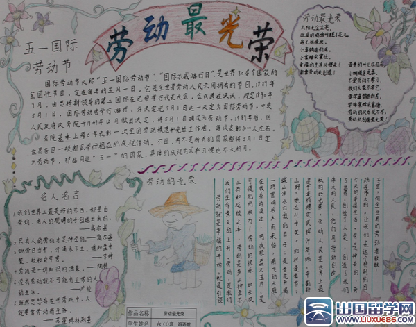 勞動(dòng)節(jié)總是和長(zhǎng)周末假期聯(lián)系在一起,你有時(shí)間畫這個(gè)節(jié)日的手抄報(bào)了!!!下面是由出國(guó)留學(xué)網(wǎng)整理的高中勞動(dòng)節(jié)手抄報(bào),歡迎閱讀。更多相關(guān)勞動(dòng)節(jié)手抄報(bào)文章,請(qǐng)關(guān)注手抄報(bào)欄目。