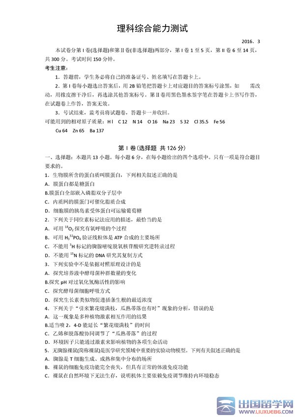 2016東營一模已結(jié)束,以下是出國留學(xué)網(wǎng)高考網(wǎng)小編整理的2016東營一模理綜試題及答案,大家可以參考一下!