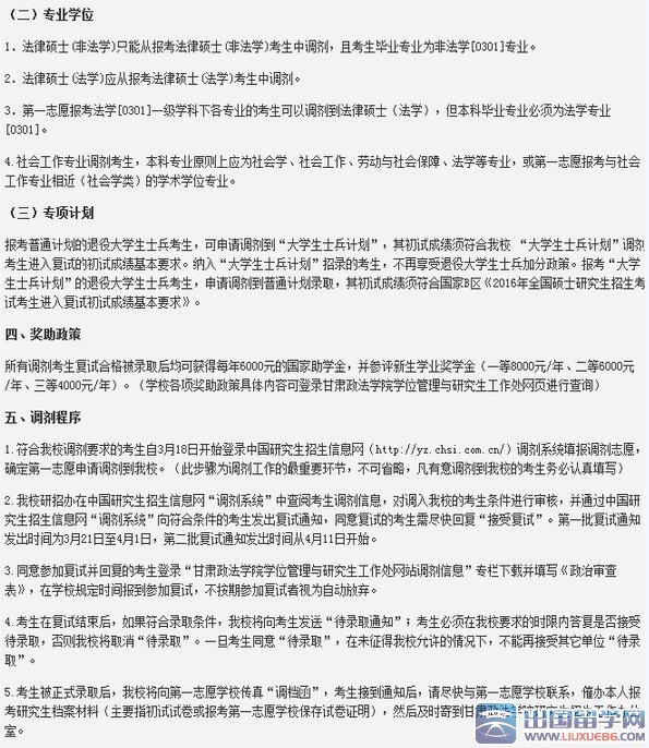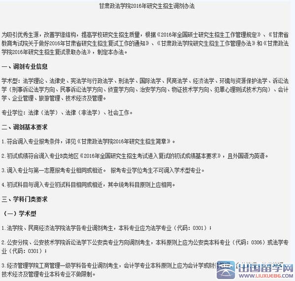 每個(gè)學(xué)校具體的考研調(diào)劑時(shí)間都不一樣,請(qǐng)大家關(guān)注出國(guó)留學(xué)網(wǎng)考研調(diào)劑的信息更新,以便以最快的速度了解考試成績(jī)!下面是甘肅政法學(xué)院2016考研調(diào)劑信息,大家還可以關(guān)注2016各大院校考研調(diào)劑信息匯總及2016年考研調(diào)劑信息匯總以便了解最新的考研調(diào)劑信息!