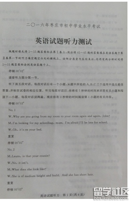 山東棗莊2016年中考英語(yǔ)試題及答案