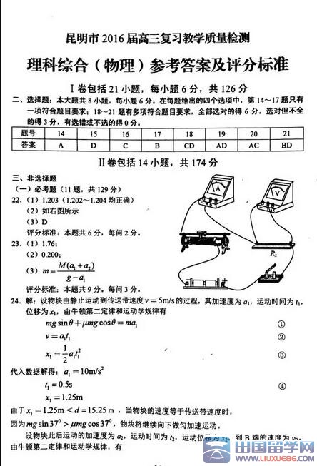 2016昆明市高三統(tǒng)考于3月28-29日考試,以下是出國(guó)留學(xué)網(wǎng)高考網(wǎng)小編整理的2016昆明市高三統(tǒng)考物理試題及答案,供同學(xué)們參考學(xué)習(xí)。