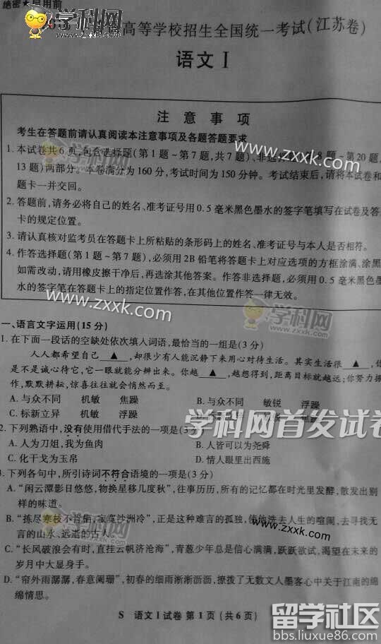 一天天的努力,一點(diǎn)點(diǎn)的積累,一步步的前進(jìn),換來的是我們?cè)诳紙?chǎng)上的全部發(fā)揮,現(xiàn)在高考結(jié)束了,如果你需要了解“2016年江蘇高考語文真題及答案”請(qǐng)關(guān)注出國(guó)留學(xué)網(wǎng)高考欄目,我們?cè)谶@里等著你。