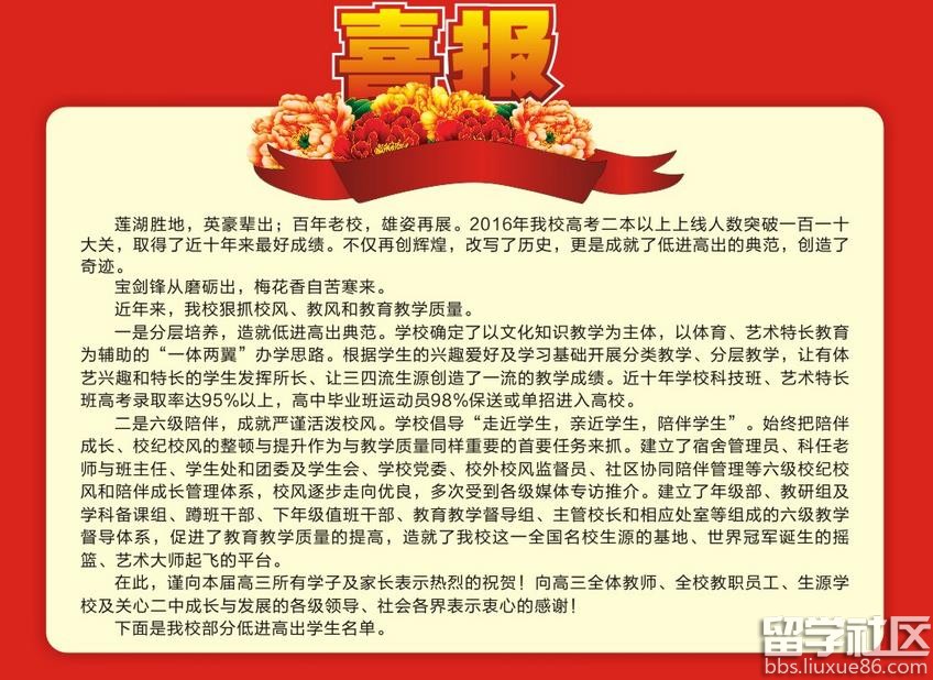 出國留學(xué)網(wǎng)高考網(wǎng)為大家提供2016年衡陽市二中高考喜報,更多高考成績查詢信息請關(guān)注我們網(wǎng)站的更新!