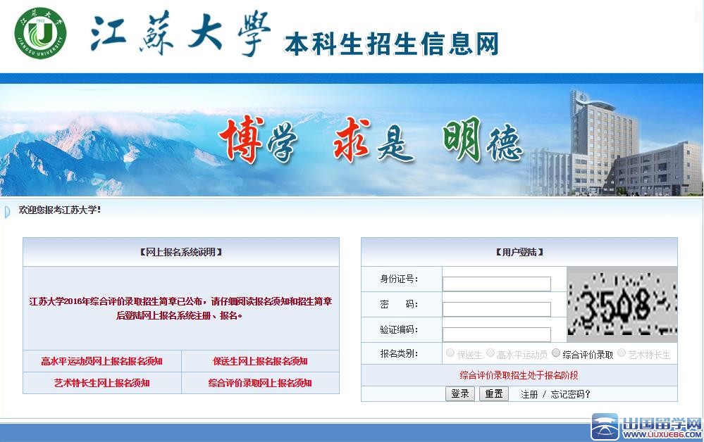 出國留學網(wǎng)高考網(wǎng)為大家提供江蘇大學2016綜合評價招生報名系統(tǒng)入口,更多高考資訊請關(guān)注我們網(wǎng)站的更新!