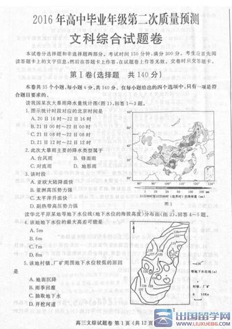 2016鄭州高三二測將于3月29-30日考試,以下是出國留學(xué)網(wǎng)高考網(wǎng)小編整理的2016鄭州高三二測文綜試題及答案,供同學(xué)們參考學(xué)習(xí)。更多二模試題及答案請點擊>>>全國各省市二模試題及答案