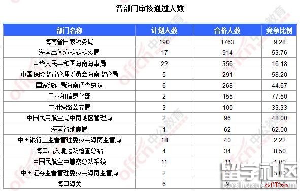 為幫助廣大考生更清晰的了解今日報名情況,海南國家公務員考試網(wǎng)整理今天各部門的報名情況供廣大考生參考: