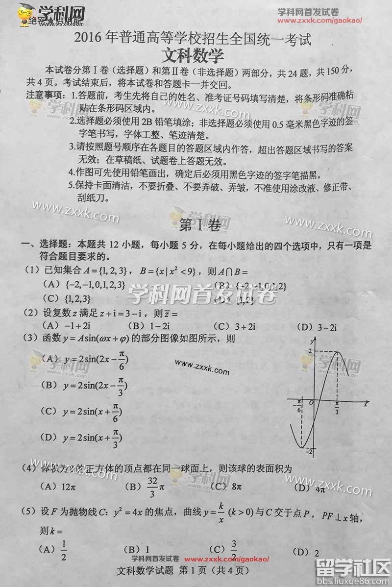 一切的力量的積蓄終于這這一刻完全爆發(fā)了,隨著高考終考鈴聲的響起,2016年高考已經順利結束了。出國留學網出國留學網高考頻道為您提供2016年新疆高考文科數學真題及答案(完整版)。如果您想要找的真題及答案沒有顯示,可按Ctrl+F5進行刷新。