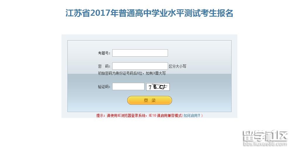 2017江蘇高中學(xué)業(yè)水平考試報(bào)名系統(tǒng):http://pgbm.jseea.cn/login_xc.jsp