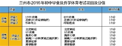 據(jù)了解,今年蘭州市體育中考考試必考為三項,選考項目(六選二)由考生自行選定。