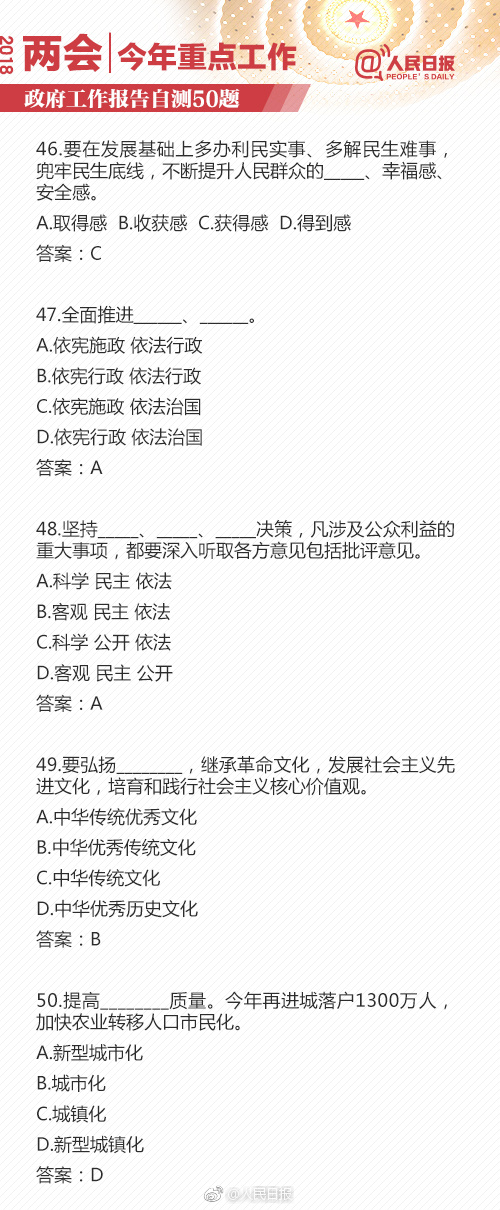 2018年公務(wù)員考試復(fù)習(xí)政府工作報(bào)告自測(cè)50題