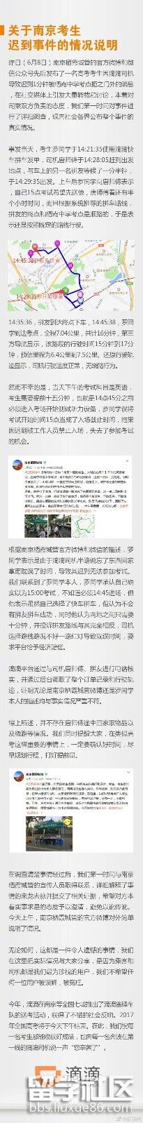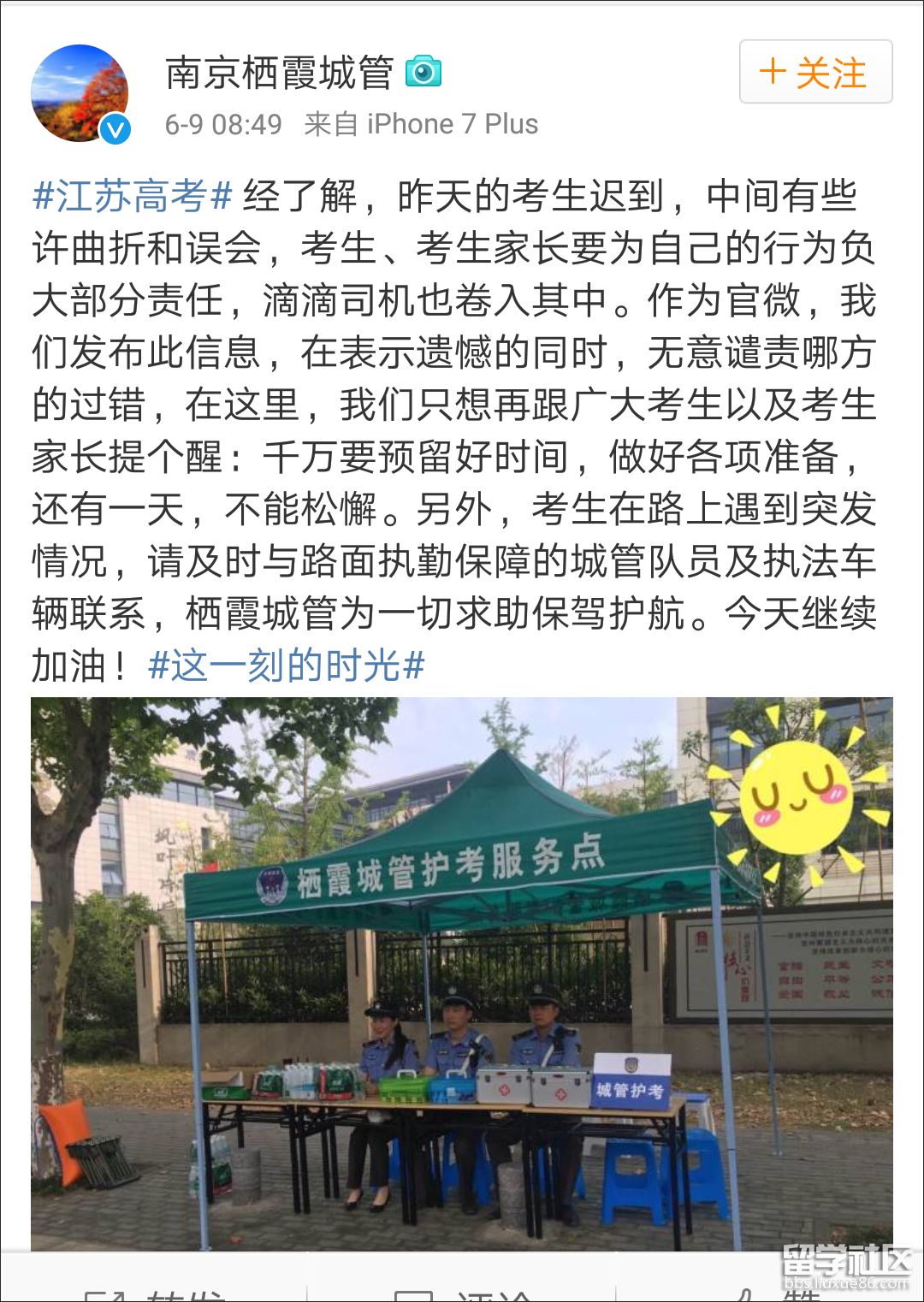 出國(guó)留學(xué)網(wǎng)為大家提供“2017南京高考生稱拼車(chē)遲到 滴滴:是他自己記錯(cuò)時(shí)間”供廣大考生參考,更多資訊請(qǐng)關(guān)注我們網(wǎng)站的更新!