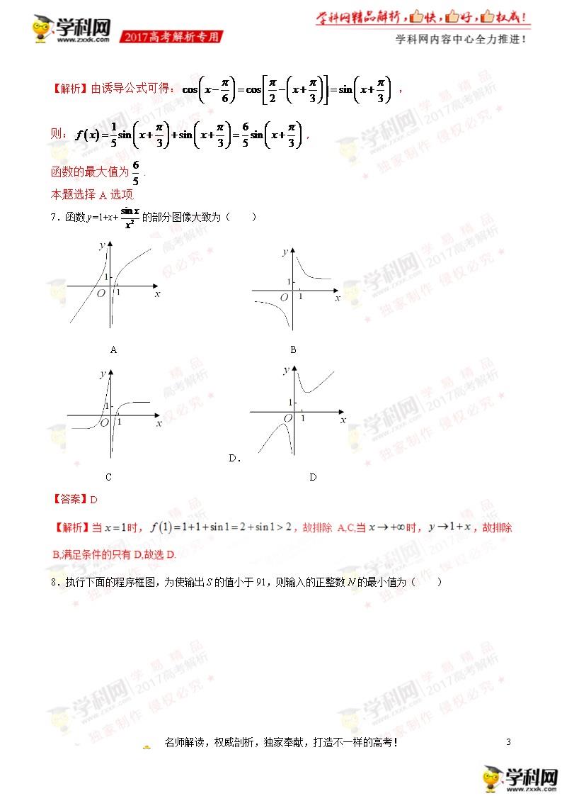 2017年高考全國卷3文科數(shù)學(xué)真題及答案解析(清晰版)