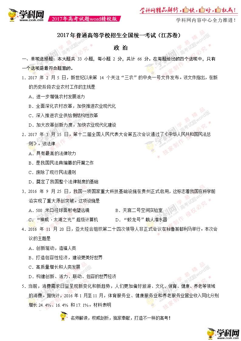 2017年高考已經(jīng)結(jié)束,考生們都挑戰(zhàn)自己,挑戰(zhàn)人生了。出國留學網(wǎng)高考網(wǎng)為大家提供常州2017高考政治試卷含答案(官方版) ,更多高考資訊請關(guān)注我們網(wǎng)站的更新!