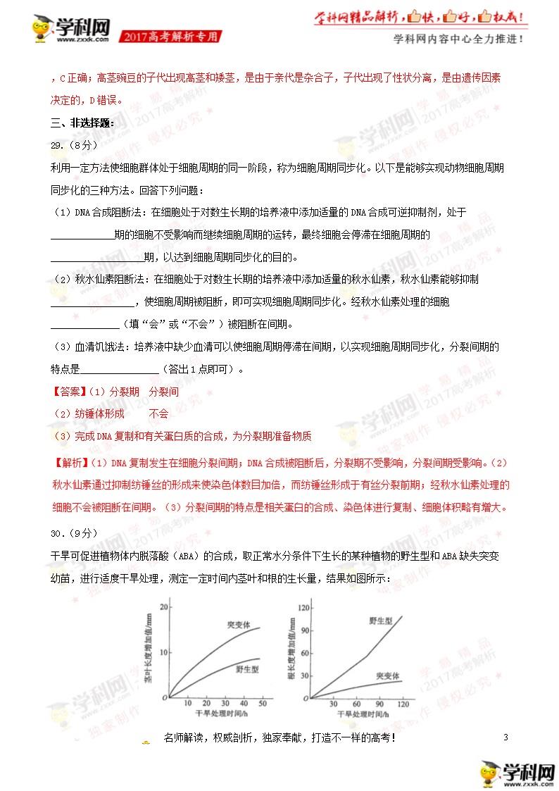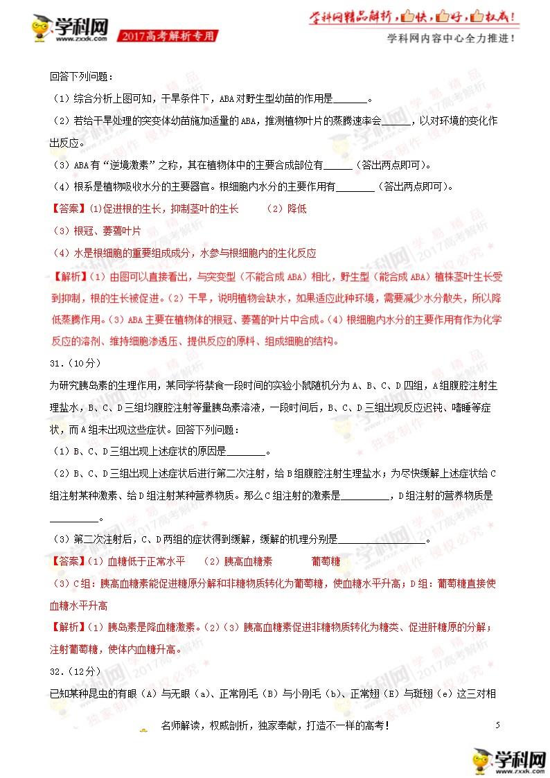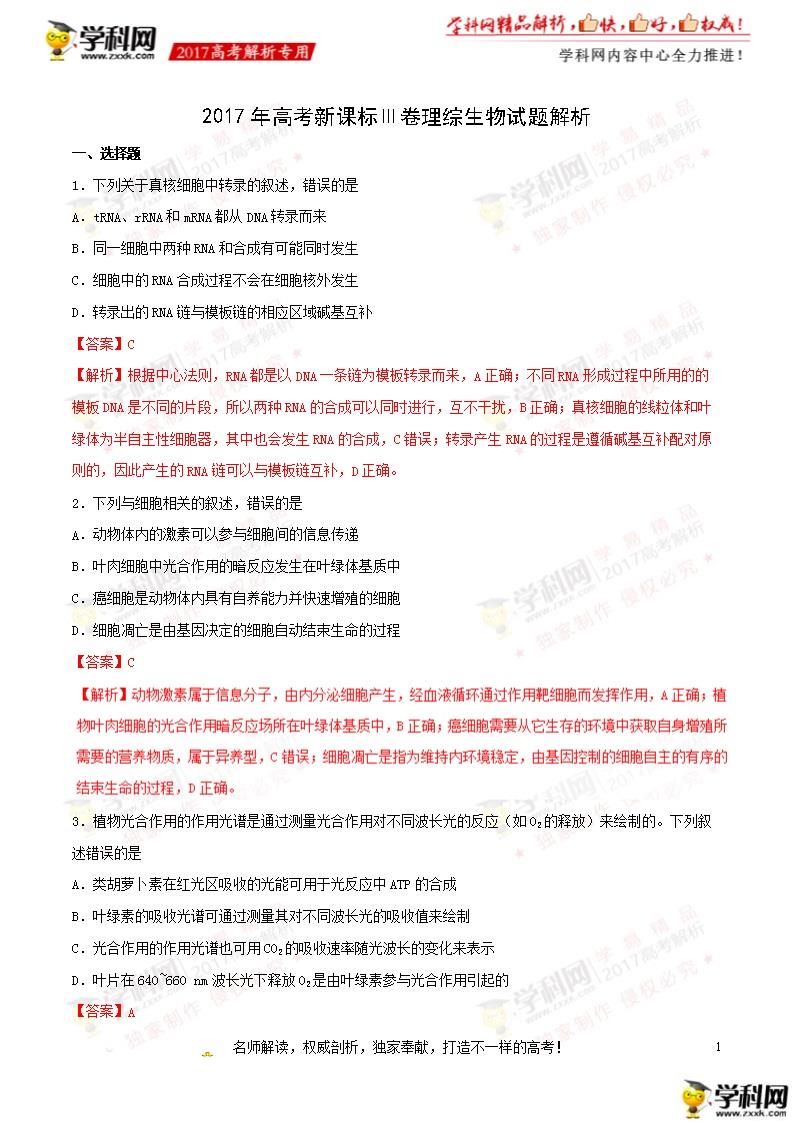2017年高考全國卷3理綜真題及答案解析(完整版)
