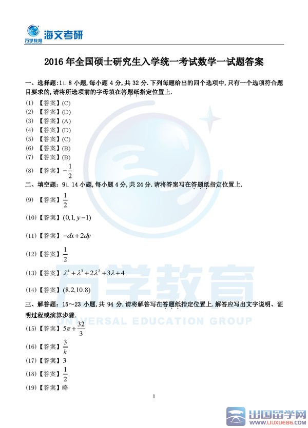 | 英語一答案 | 英語二答案 | 數(shù)學(xué)一答案 | 數(shù)學(xué)二答案 | 數(shù)學(xué)三答案 | 數(shù)農(nóng)答案 | ||
