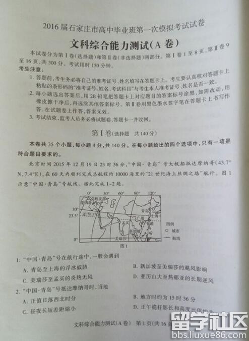 2016石家莊一模將于4月7日-8日考試,以下是出國留學(xué)網(wǎng)高考網(wǎng)小編整理的2016石家莊一模地理試題及答案,供同學(xué)們參考學(xué)習(xí)。2016高三一模試題及答案請點擊>>全國各省市2016高三一模試題及答案