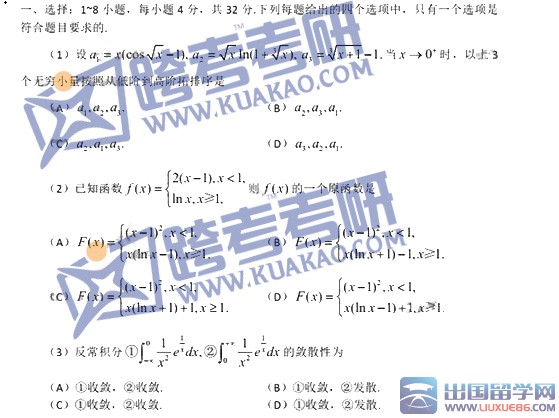| 英語一真題 | 英語二真題 | 數(shù)學(xué)一真題 | 數(shù)學(xué)二真題 | 數(shù)學(xué)三真題 | 數(shù)農(nóng)真題 | ||