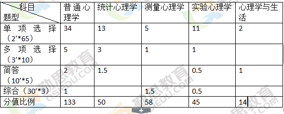 南京大學(xué)雖然早已自主命題,但是題型分布還是和統(tǒng)考一樣,分值比例是沒(méi)有變化。通過(guò)分布表,大家能夠看出來(lái)南大的分值比較基礎(chǔ),重心放在普通心理學(xué)上,所以目標(biāo)是南大的17年的考生,一定要把基礎(chǔ)夯實(shí)了才可以。除了普通心理學(xué)這一科,實(shí)驗(yàn)、統(tǒng)計(jì)、測(cè)量這三大難點(diǎn)也是實(shí)力相當(dāng),并且是結(jié)合出題,所以對(duì)這幾科頭疼的考生更不能小覷他們的地位。