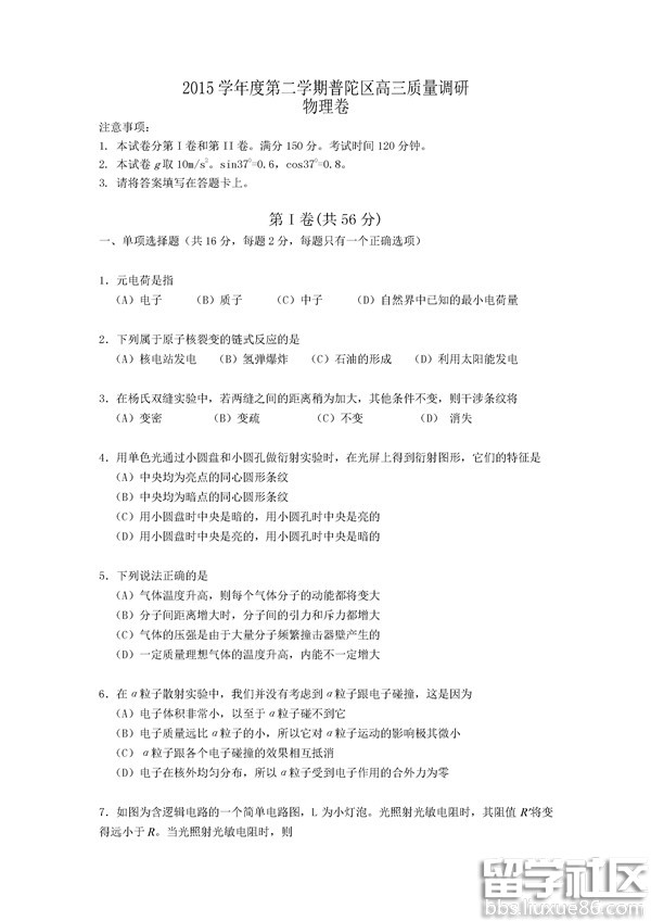 2016上海市普陀區(qū)高三二模已結(jié)束,以下是出國(guó)留學(xué)網(wǎng)高考網(wǎng)小編整理的2016上海市普陀區(qū)高三二模物理試題及答案,供同學(xué)們參考學(xué)習(xí)。