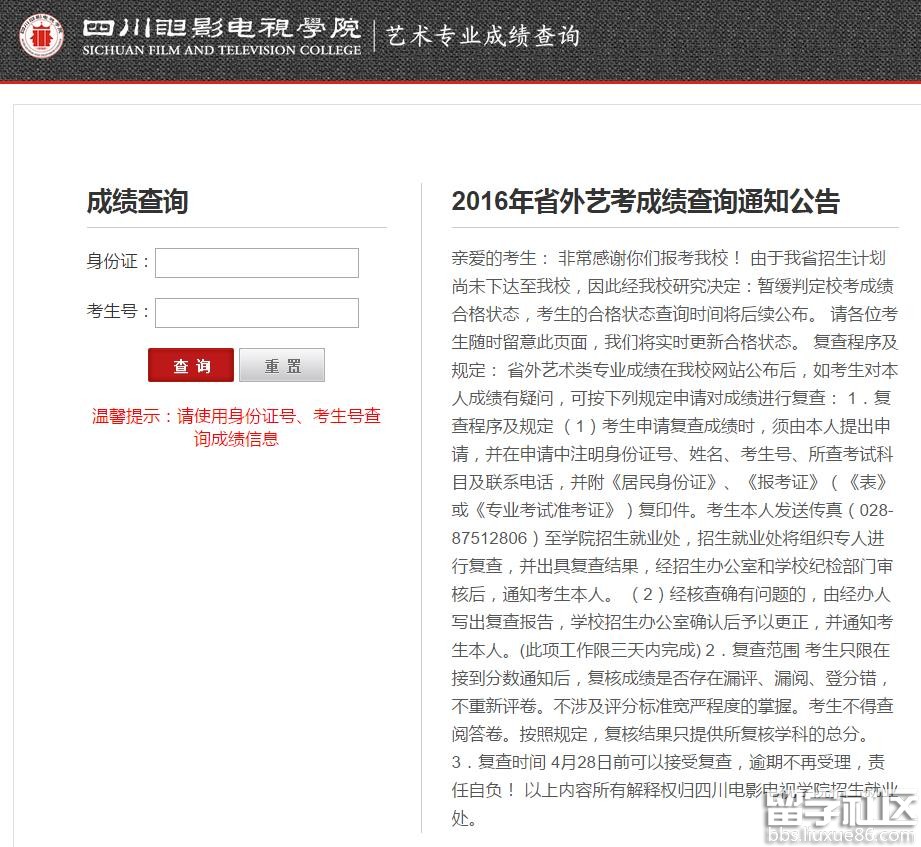 2016年四川電影電視學(xué)院藝術(shù)類成績(jī)查詢系統(tǒng):http://118.113.88.41:8080/score