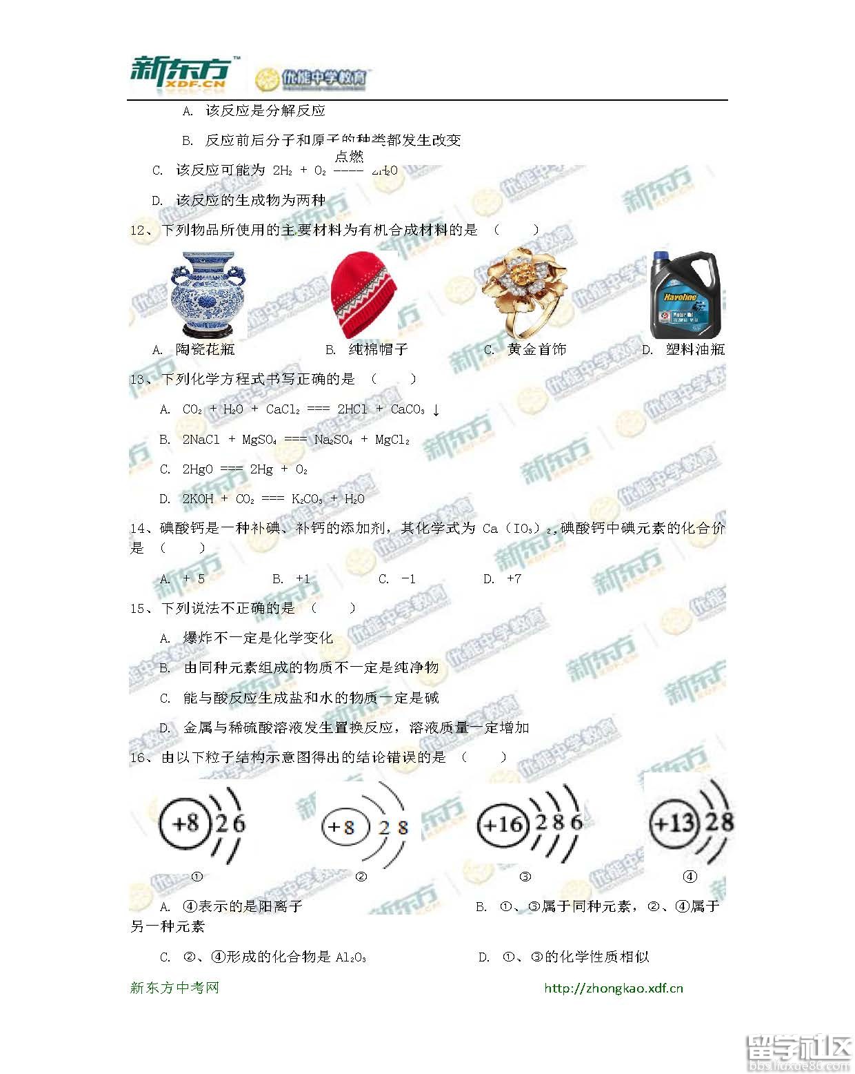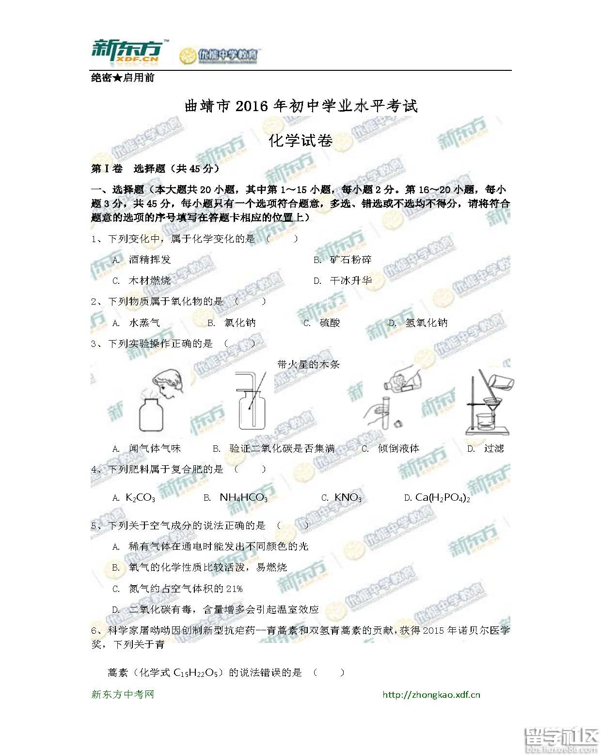 鷹擊天風壯,鵬飛海浪春。 出國留學網中考頻道的小編會及時為廣大考生提供:曲靖2016中考化學試卷及答案(word版),有需要的考生可以在考題公布后刷新本頁面(按ctrl+F5),希望對大家有所幫助。