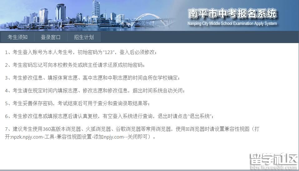 出國留學網(wǎng)小編為您提供2016南平中考報名系統(tǒng):http://npzk.npjy.com/,更多精彩內(nèi)容歡迎訪問www.liuxue86.com。