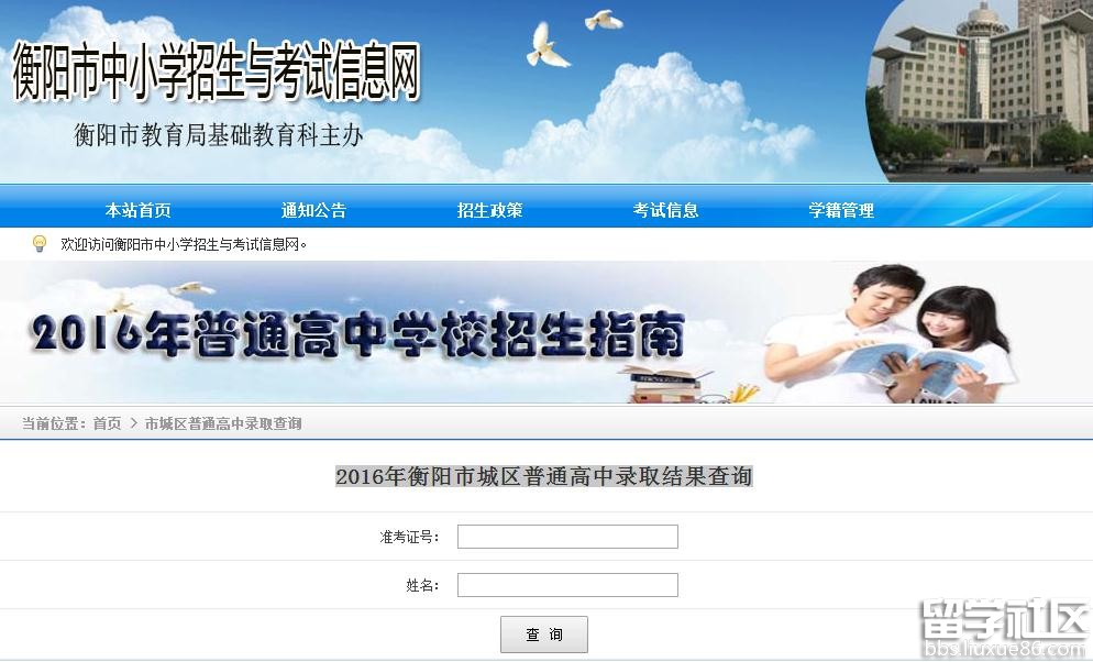 2016衡陽城區(qū)普通高中錄取結(jié)果查詢: