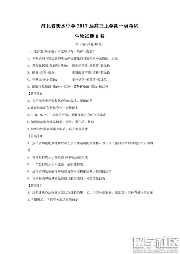 2017屆衡水中學高三一調已結束,出國留學網高考網小編整理了2017屆衡水中學高三一調生物試題及答案(B),供同學們參考學習。