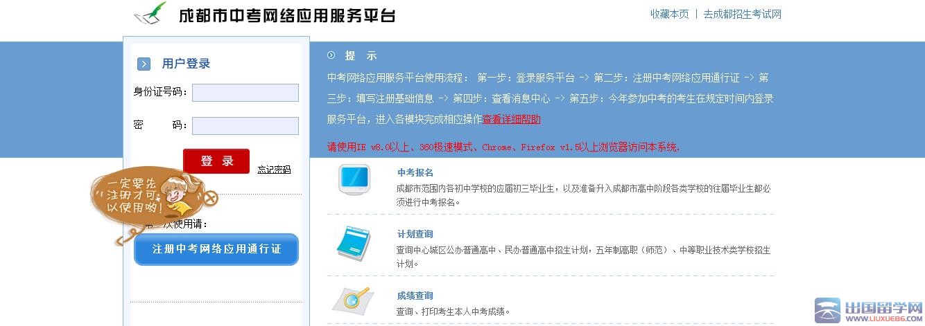 出國(guó)留學(xué)網(wǎng)中考網(wǎng)為大家提供2016年成都中考成績(jī)查詢(xún)網(wǎng)址:http://zkzx.cdzk.net/,更多成都中考資訊請(qǐng)關(guān)注我們網(wǎng)站的更新!