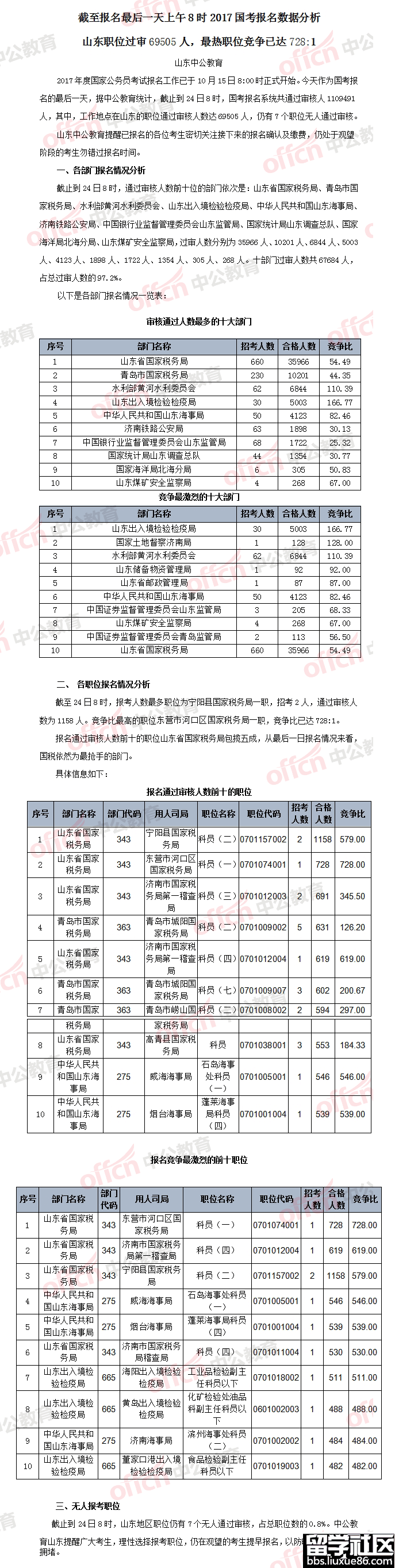 2017年國家公務員考試職位分析匯總